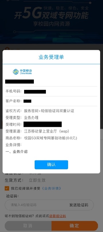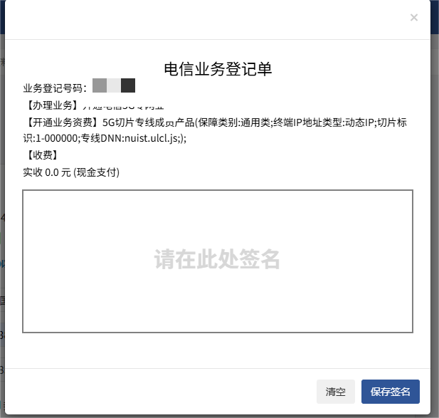4.签名完成后,系统会自动弹出前往对应运营商开通5G专网业务的方式,请用户自主进行业务办理(各运营商开通流程请参照第三部分“运营商开通流程”)。