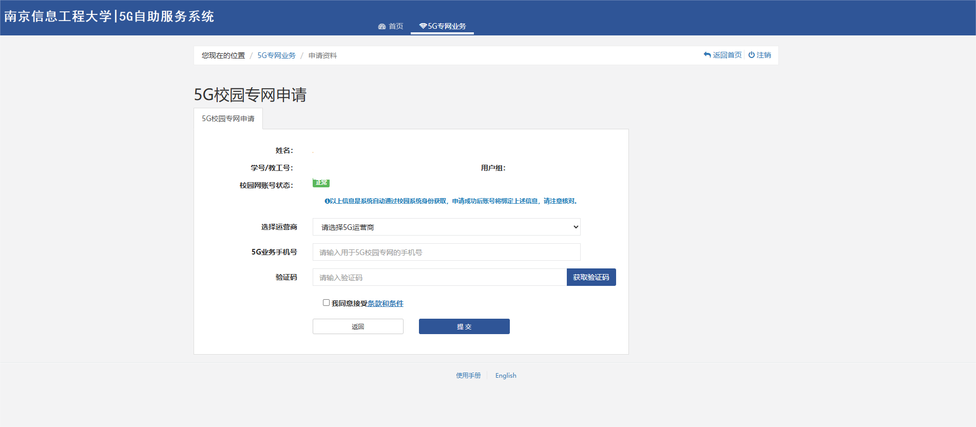 为更优质地服务于我校教职工,提升校内外办公与科研网络体验,现面向南京信息工程大学教职工推出5G专网办理服务。