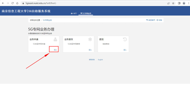 1.用户在校园内网或VPN环境下通过浏览器访问https://5gnuist.nuist.edu.cn,通过统一身份认证页面登录“5G自助服务系统”。